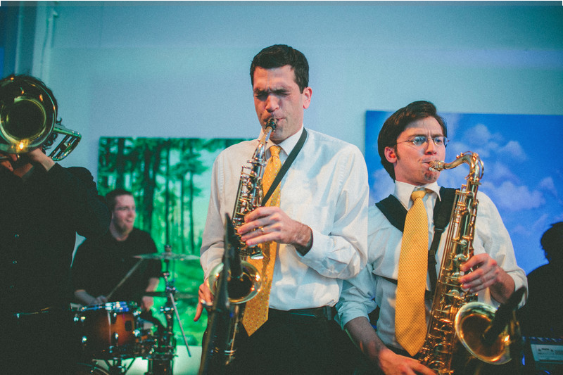 The couple's first dance is invariably one of the most meaningful parts of the big day. It's an opportunity for the bride and groom to take a moment for themselves. For this specific wedding, we were requested to play the first dance tune live, as opposed to performing it from a recording. Sarah & Ben danced to The Horrah, which everyone thoroughly enjoyed. With this part of the evening finished, the guests and vendors took a break for dinner. After a quick break, East Coast Soul's Stax ensemble returned to the stage.