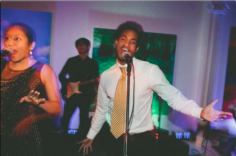 As is often the case, East Coast Soul was asked to provide cocktail hour music. Cocktail hour is a wonderful chance for the bride and groom to unwind after the heightened emotions of the ceremony. We contribute by performing a variety of relaxed music for guests to enjoy. In this case, cocktail hour took place Second floor of Artists for Humanity. We provided a Playback and and featured music by artists such as Duke Ellington, Glenn Miller, and more.