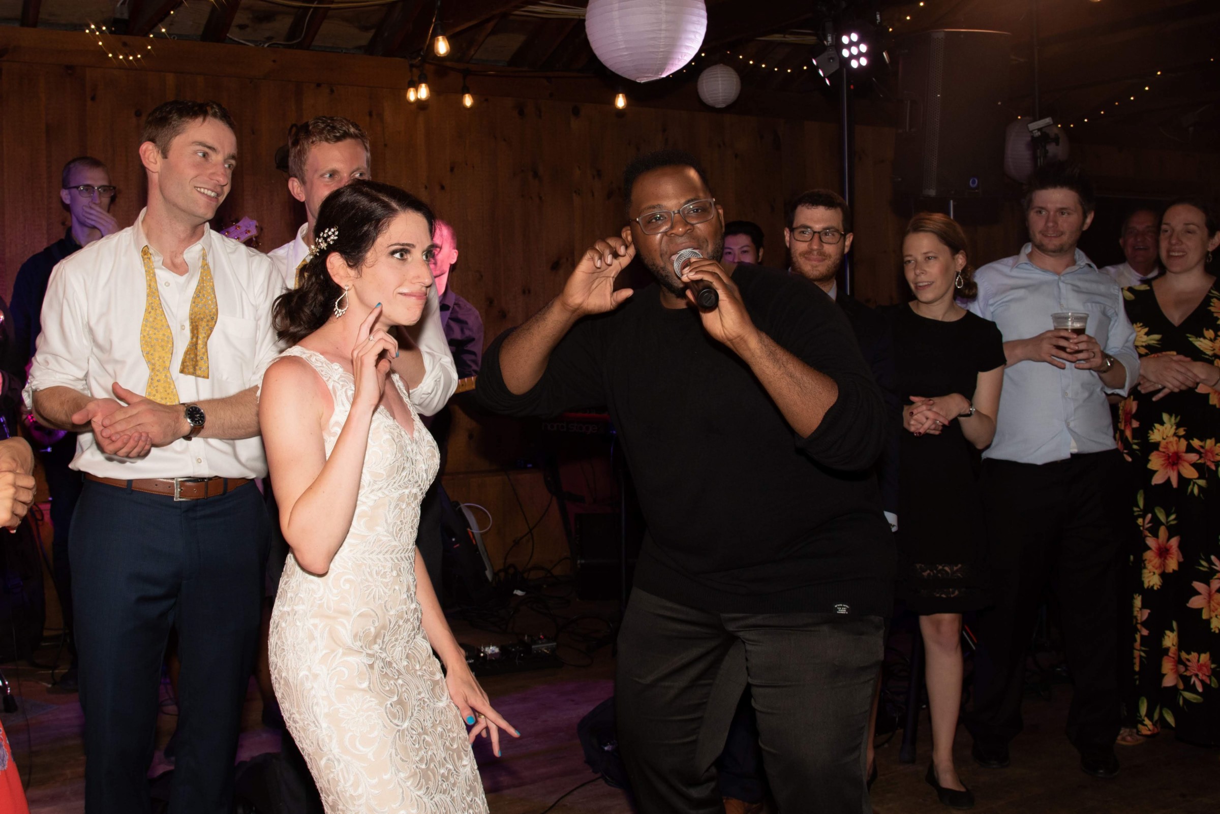 The groom and bride's first dance is invariably one of the most unforgettable parts of the wedding. It's a chance for the bride and groom to take a moment for themselves. For this wedding in particular, we were requested to play the first dance number from a recording, instead of performing it live. Dana & Tucker danced to a customized medley of At Last into Rock Your Body, prepared by East Coast Soul, which everyone thoroughly enjoyed. With this portion of the evening complete, the guests and vendors took a break for dinner. After a quick break, East Coast Soul's Soulsville ensemble circled back to the stage.