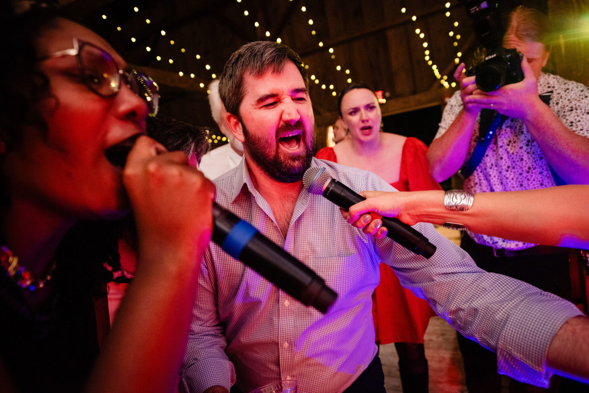 Once the first dance wrapped up, it was time for East Coast Soul to do what the couple really brought us in for: a high-energy dance floor in the main barn from 7:30–10:00pm, with no slow dances and no lulls.