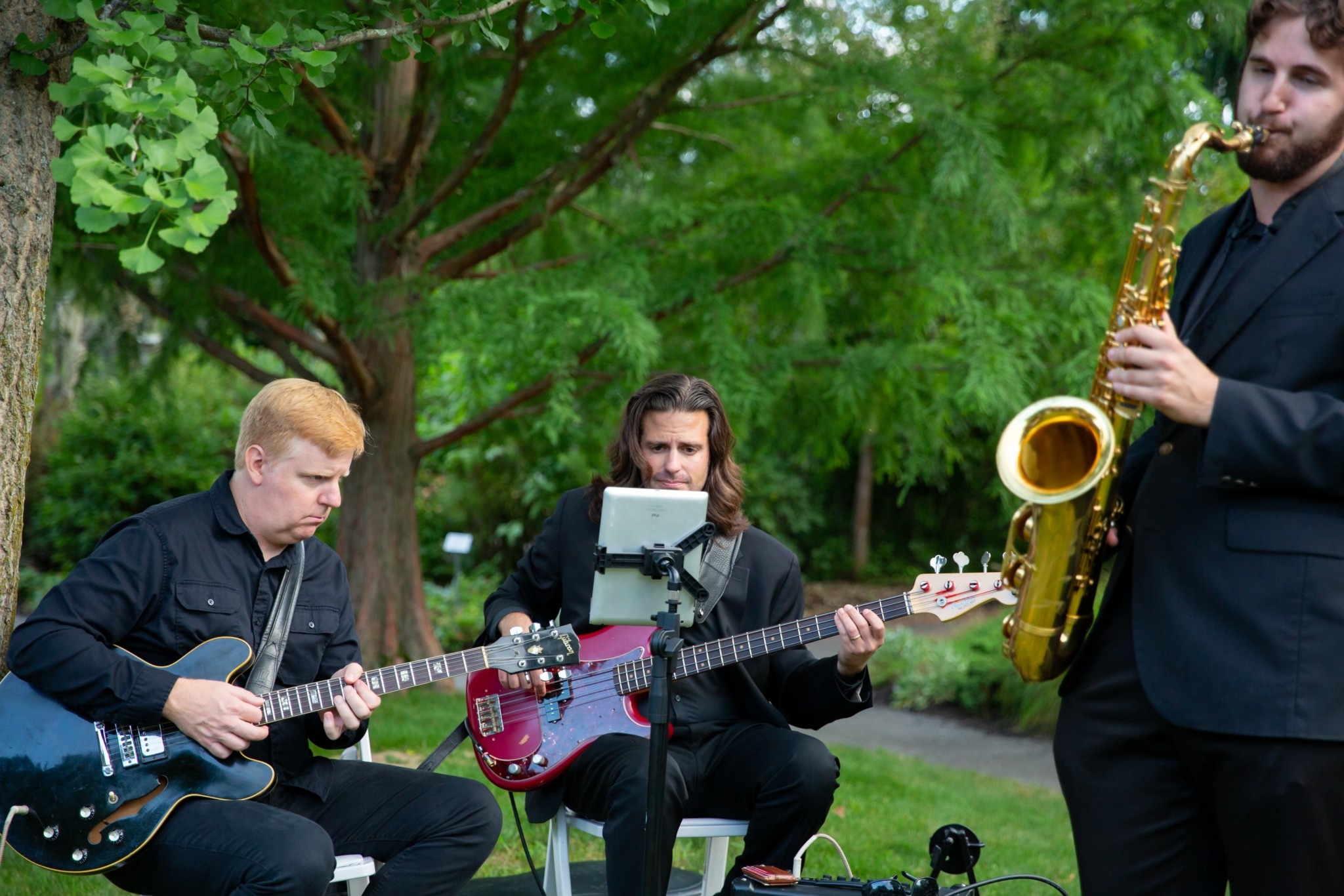 The band shifted into a guitar/sax/bass trio, playing upbeat jazz and R&B. The combination of live horns, guitar textures, and the surrounding greenery created a really inviting atmosphere—not background music in the forgettable sense, but something that quietly shaped the mood of the garden.