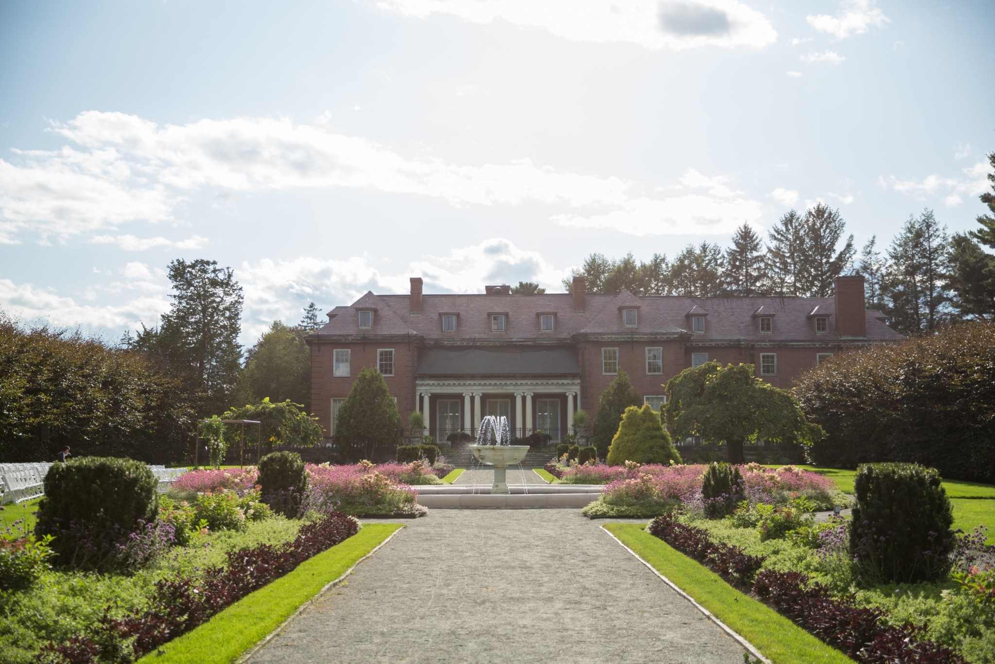 The ceremony took place in the Italianate Garden, one of Elm Bank’s signature spots. It’s formal without feeling stiff—perfect hedges, stonework, and the kind of symmetry that makes any procession feel a bit cinematic.