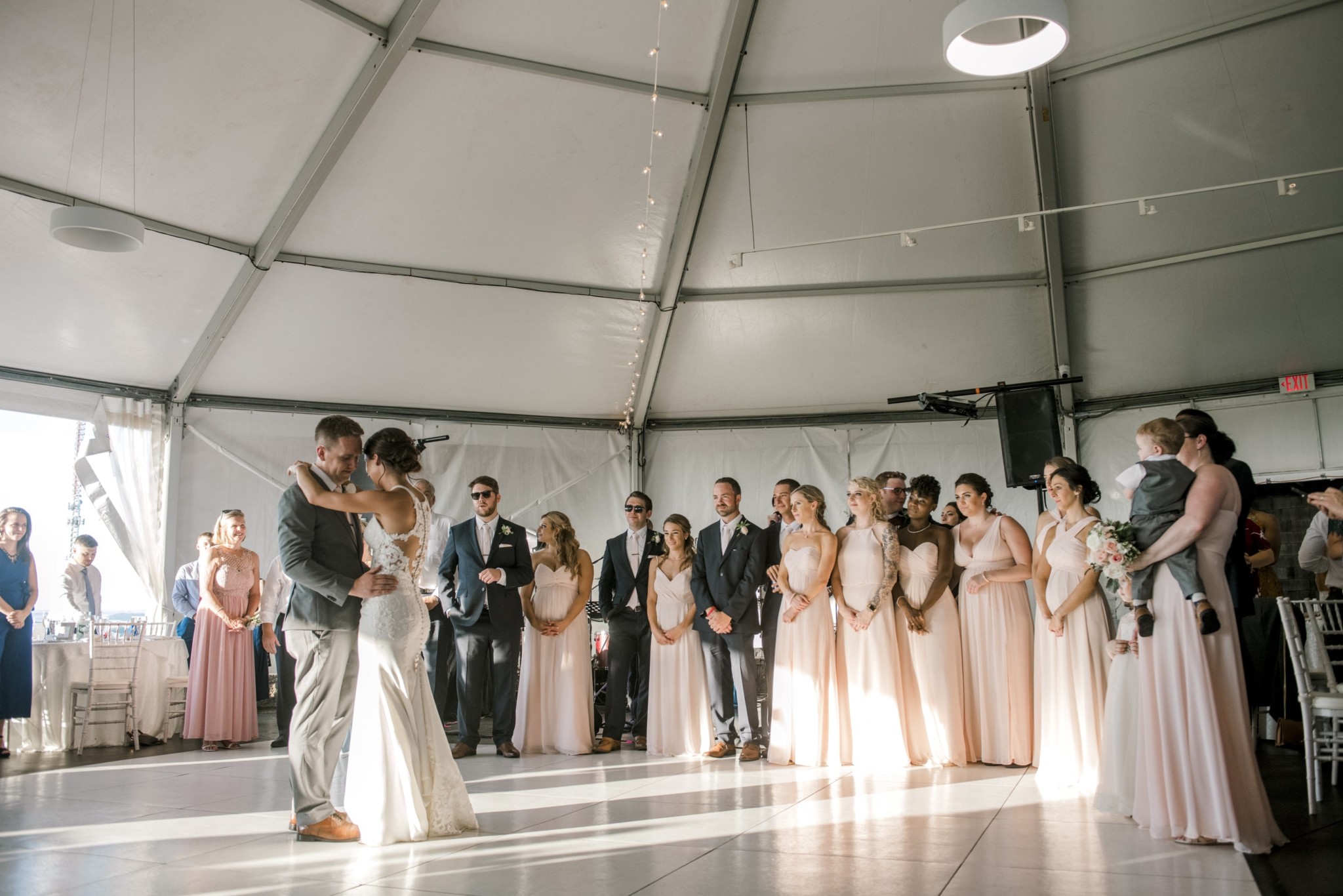 The bride and groom's first dance is consistently one of the most unforgettable parts of the wedding. It's a chance for the bride and groom to take a moment for themselves. Emily & Dan danced to I Wanna Dance With Somebody by Mark Jones, which everyone thoroughly enjoyed. With this portion of the wedding finished, the guests and vendors took a break for dinner. After a quick break, East Coast Soul's Stax ensemble circled back to the stage.