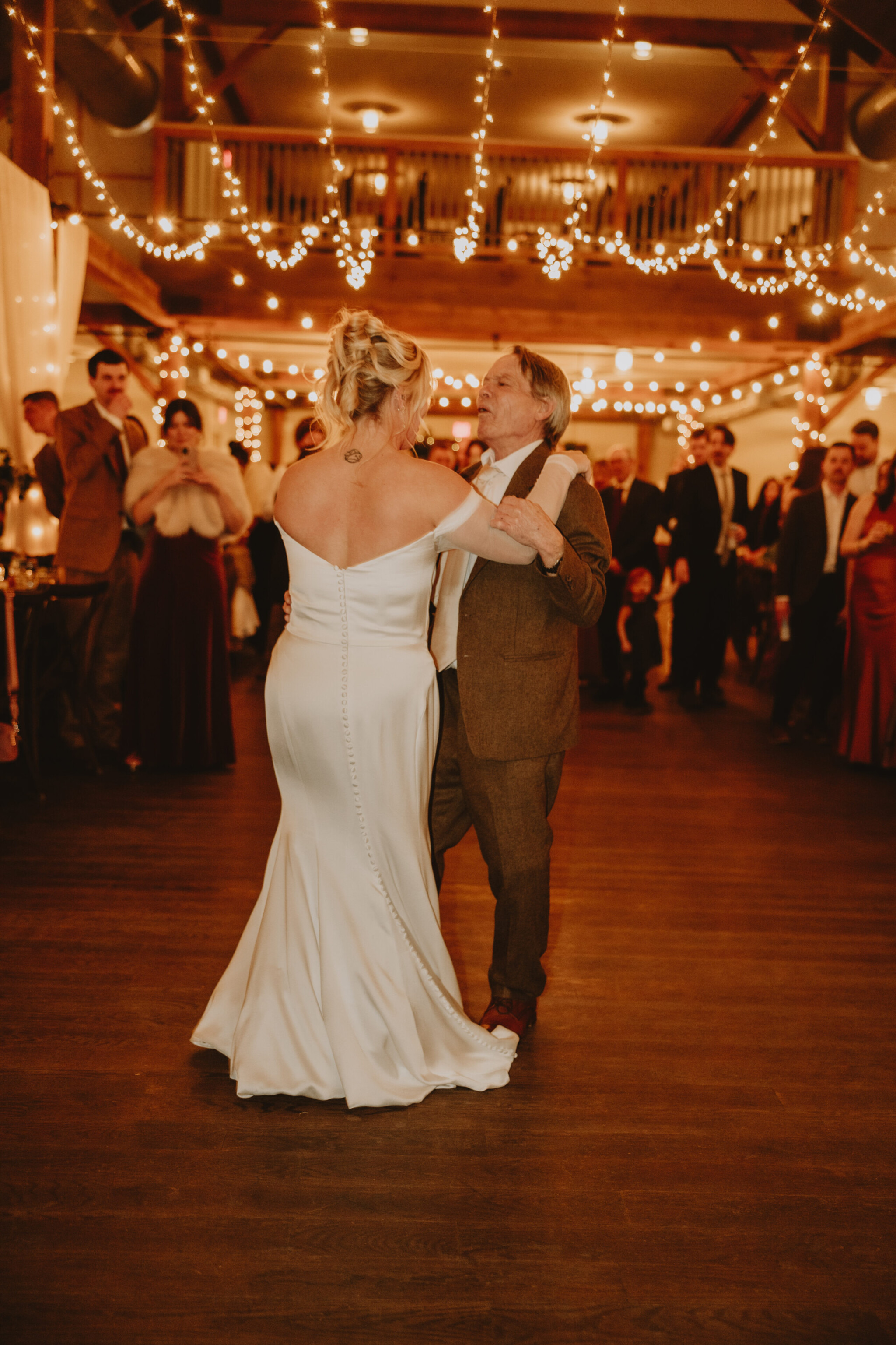 Once dinner wrapped, guests once again surrounded the dance floor for the parent dances. Shelby danced with her father to a shortened version of “Two of Us” by The Beatles, and Brett shared a moment with his mom to Josh Groban’s “Both Sides Now,” also shortened slightly.