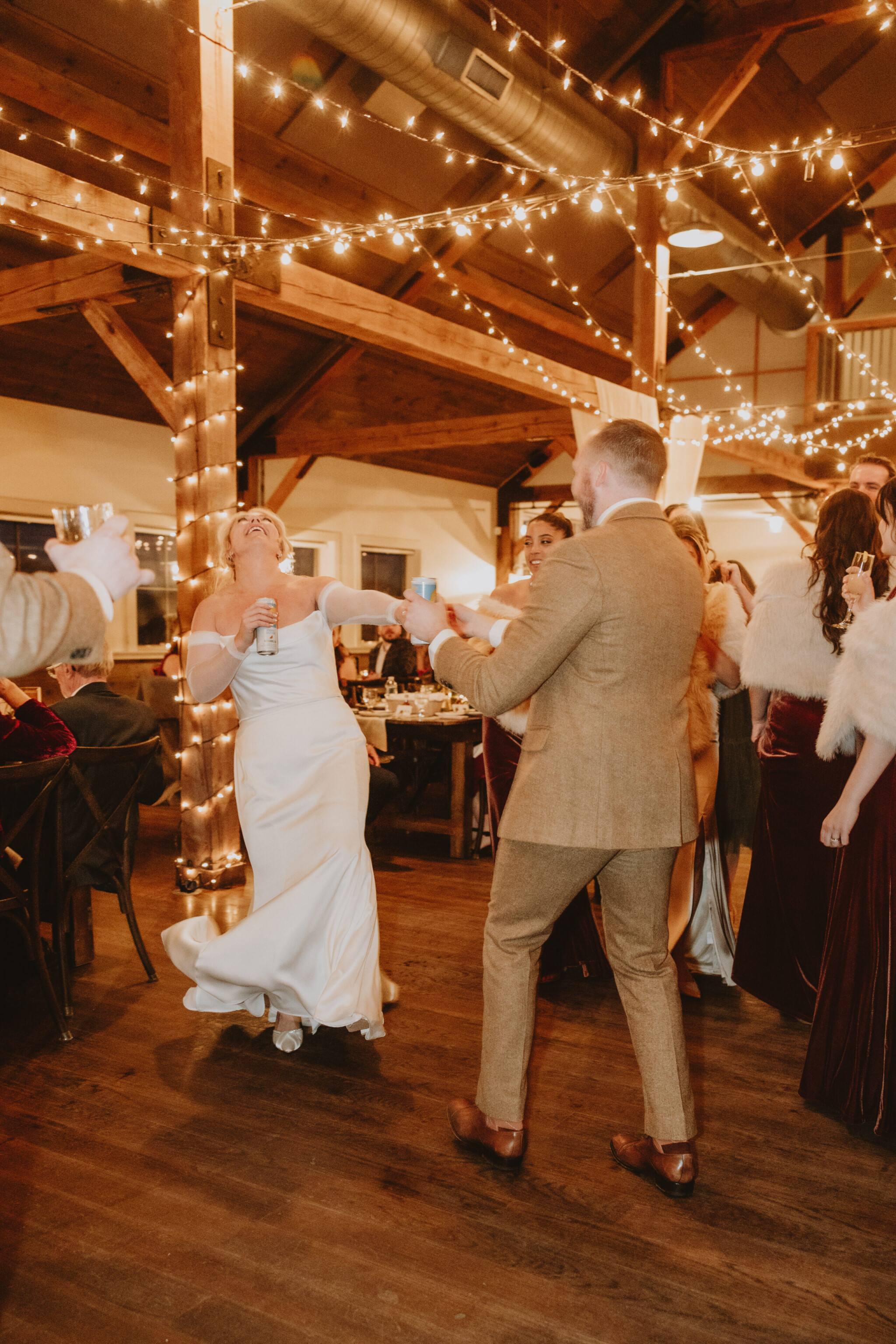 The reception officially kicked off in the Events Barn, and this is where the night really came alive. Brett and Shelby put a lot of thought into how they wanted their entrance to feel, and honestly, it was one of the most joyful, coordinated openings we’ve seen.