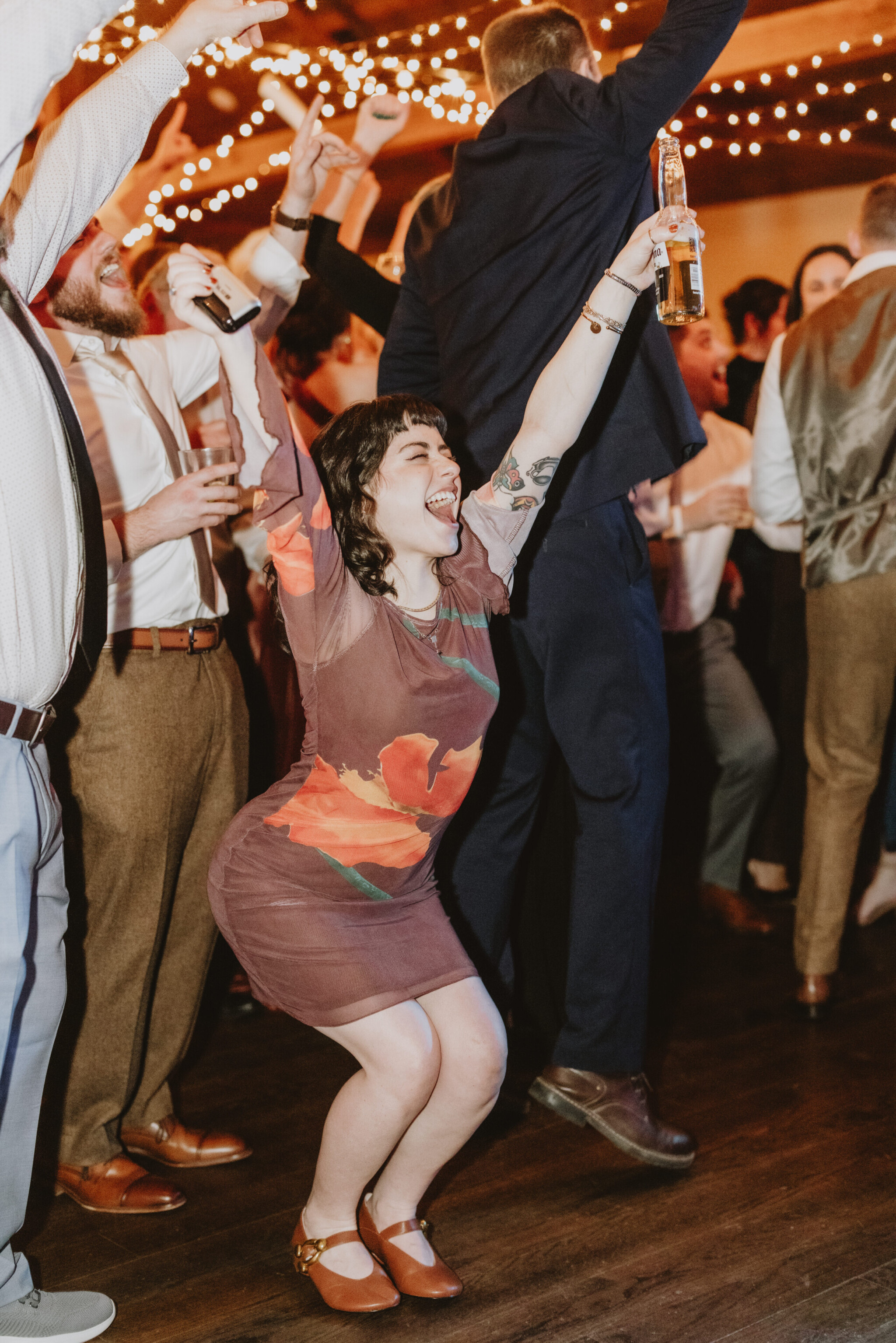 After the ceremony, everyone made their way to the Tavern, one of Mountain Top’s coziest spaces. Brett and Shelby opted for their own playlist here rather than live music, which matched the intimate, rustic vibe of the room really nicely. Drinks, conversation, warm lighting — a perfect breather before the evening ramped up.