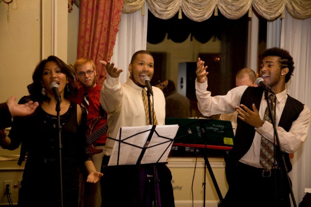 While East Coast Soul wasn’t part of the ceremony for this event, we stepped in for a relaxed, jazz-leaning cocktail hour. This is one of our favorite ways to start an evening at this venue — the ambiance of the Newbury pairs beautifully with soulful instrumentals and classic jazz standards.