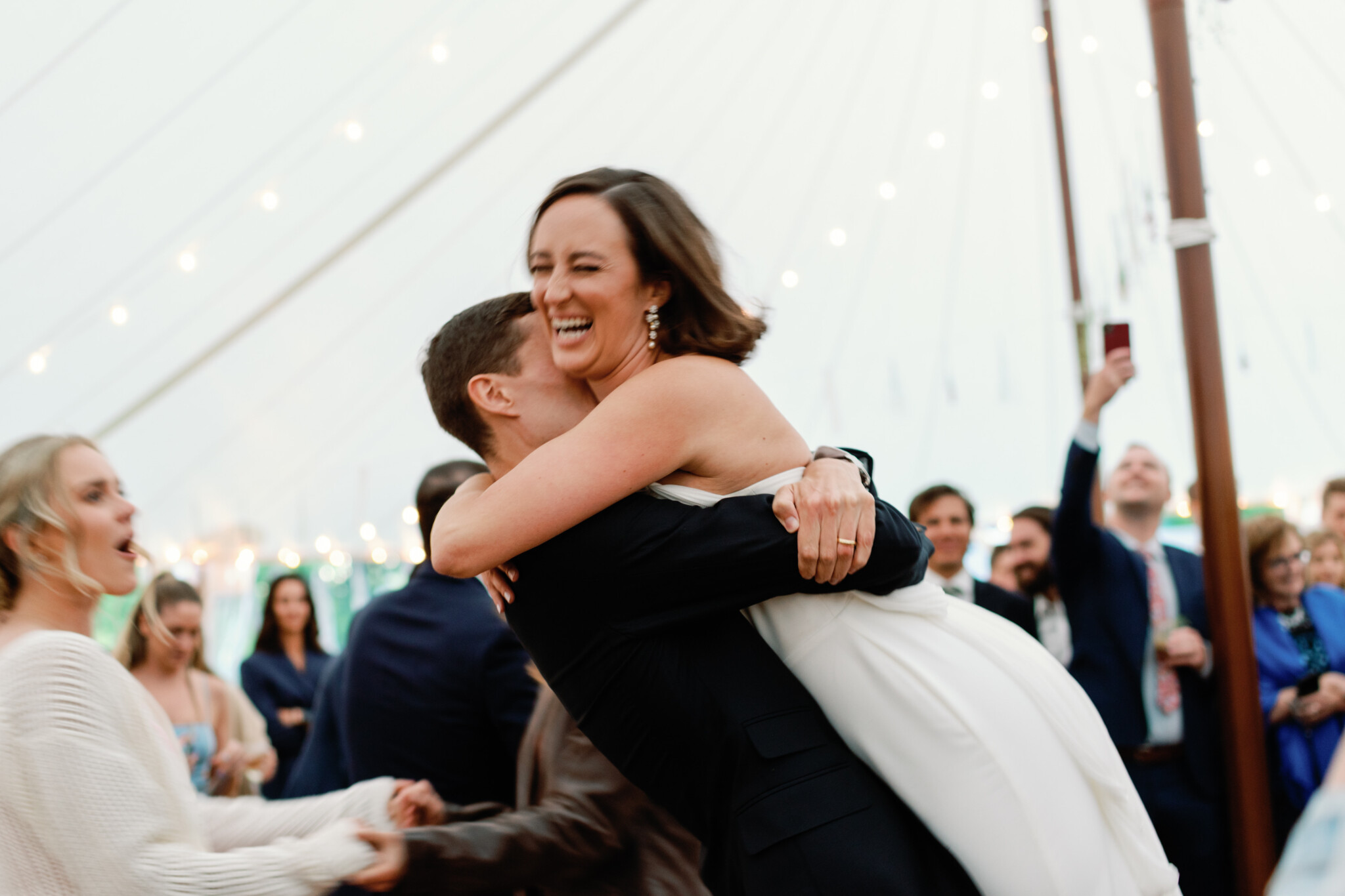 Transitioning seamlessly into the cocktail hour, East Coast Soul serenaded the gathering halfway between the ceremony and reception tent. A Guitar/Sax Duo filled the air with the timeless tunes of Frank Sinatra, Ella Fitzgerald, and more, creating the perfect ambiance for guests to unwind.