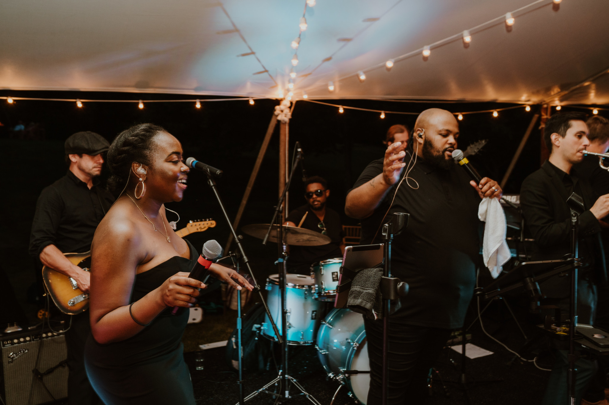 Once the wedding arrived, East Coast Soul traveled to and moved swiftly through our standard load-in, set up, and sound check process for River Road Farm weddings. We're often asked about our process for loading in and sound checking at various venues. This is a part of the day that we take seriously, spending extra time to avoid rushing, and ensuring our gear is properly tuned for the room.