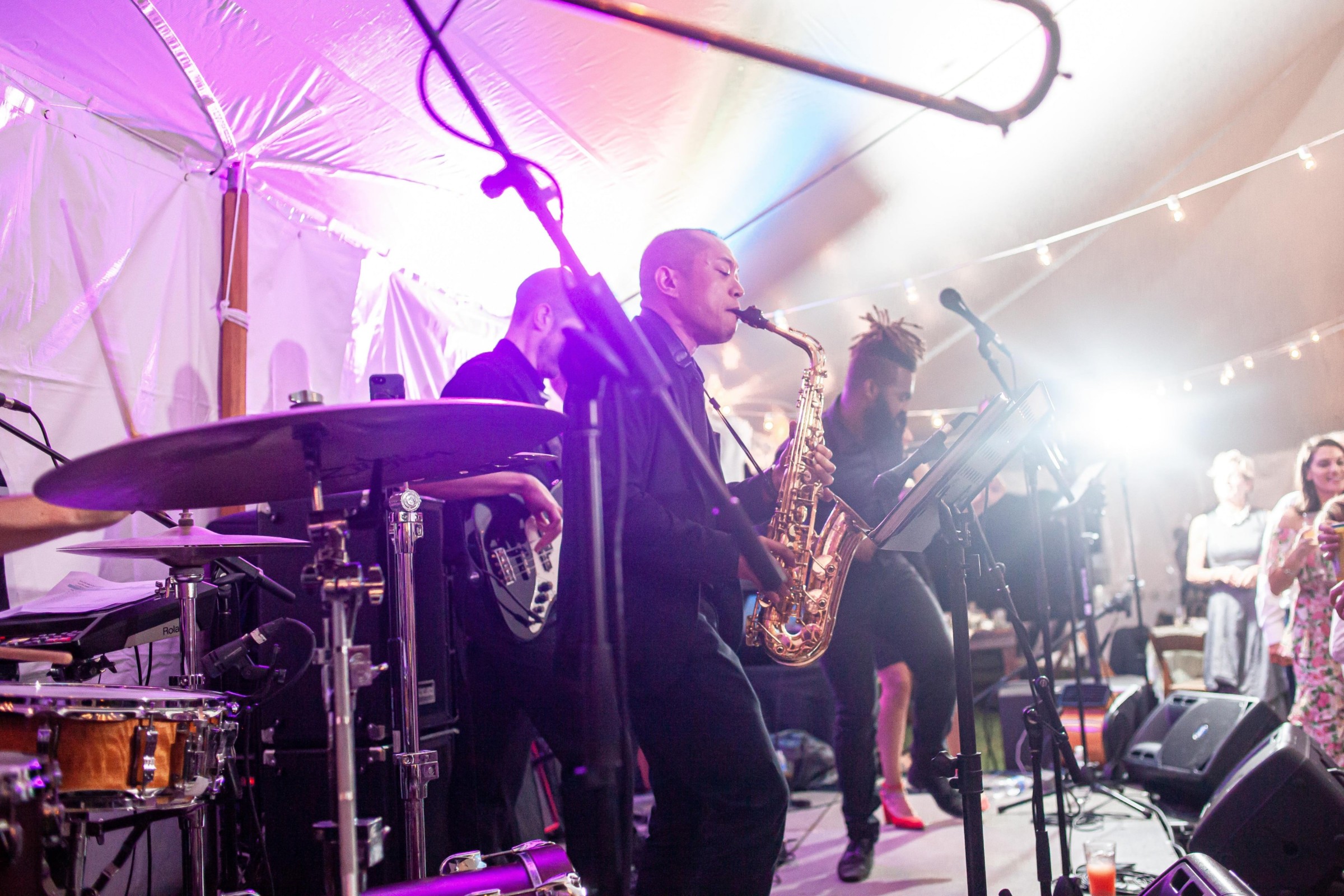 The couple's first dance is invariably one of the most emotional parts of the big day. It's a chance for the bride and groom to take a moment for themselves. With this part of the evening complete, the guests and vendors took a break for dinner. After a quick break, East Coast Soul's Stax ensemble circled back to the stage.
