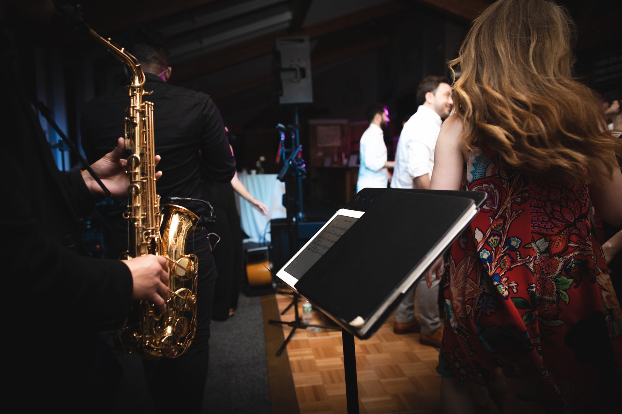 Once the wedding arrived, East Coast Soul traveled to and carried out our normal load-in, set up, and sound check process for Saskadena Six weddings. Our process for loading in and setting up at any given venue is a big part of our preparation process. This is a part of the day that we take seriously, spending extra time to avoid rushing, and ensuring our gear is properly tuned for the room.