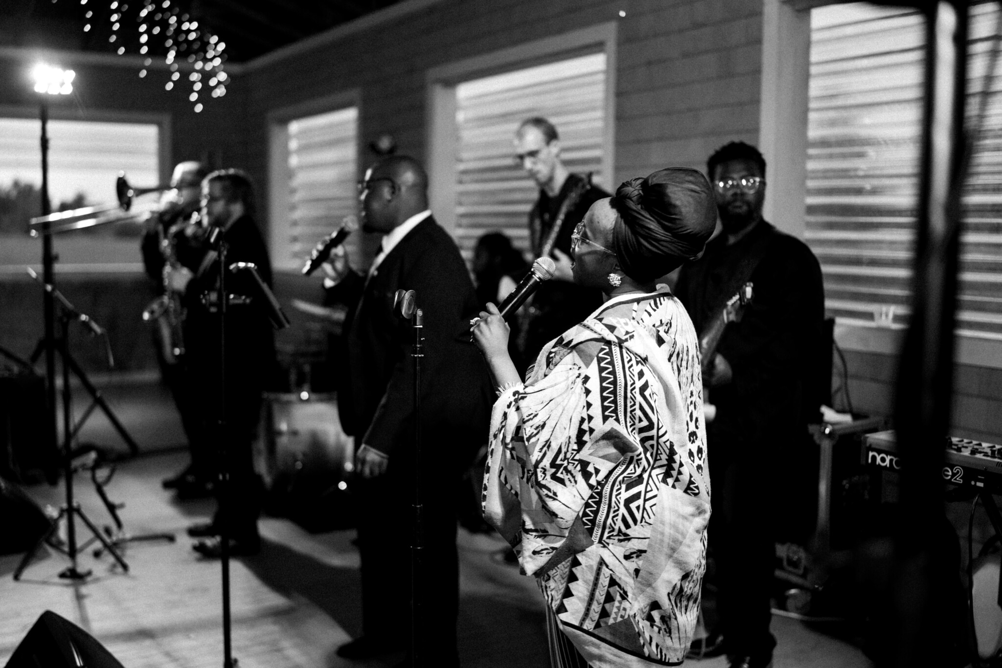 The ceremony took place inside the pavilion, with contingency plans ready for a lawn ceremony overlooking the harbor if weather allowed. East Coast Soul provided both sound reinforcement and live performance, seamlessly adapting the setup so the band could quickly transition into cocktail hour afterward.