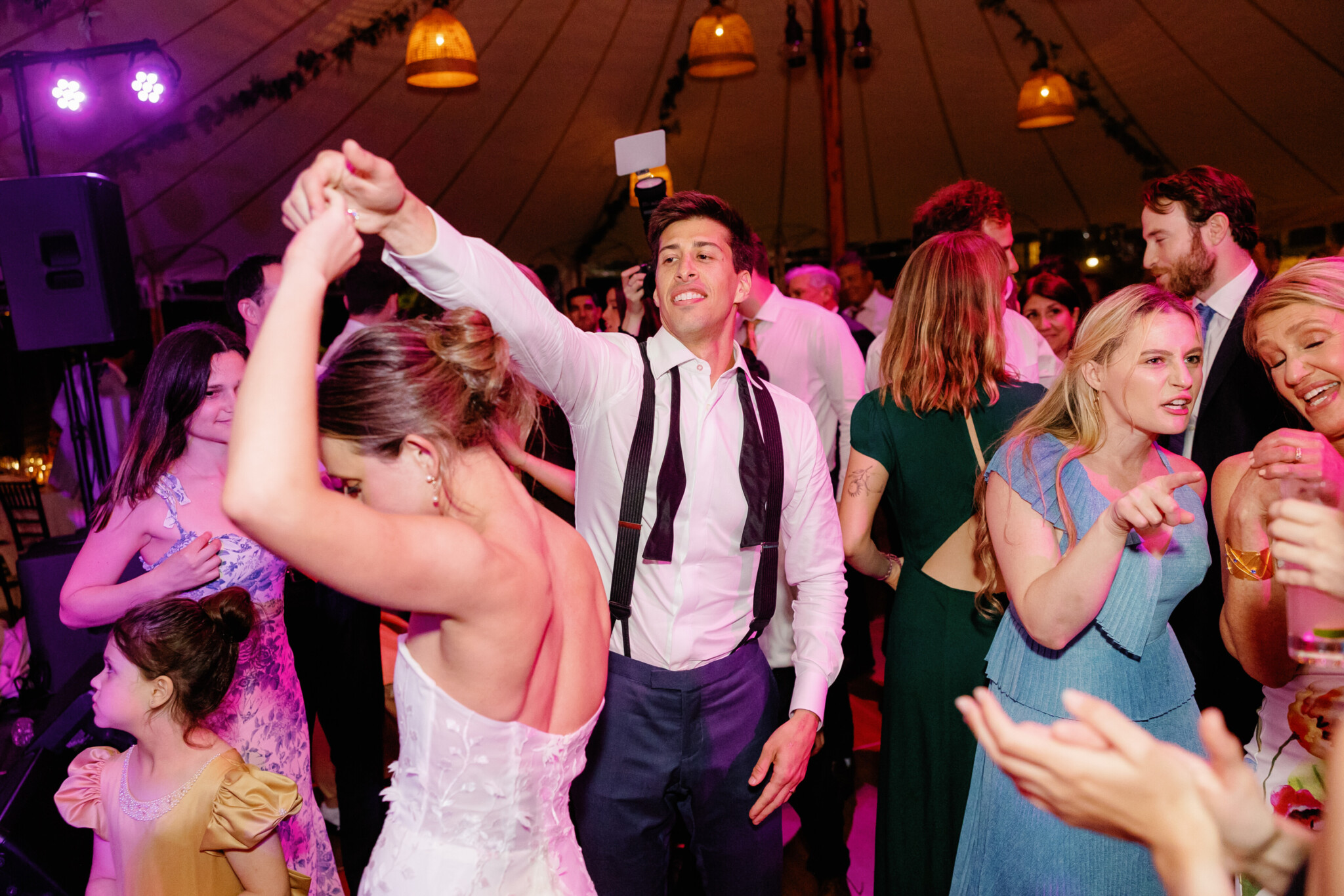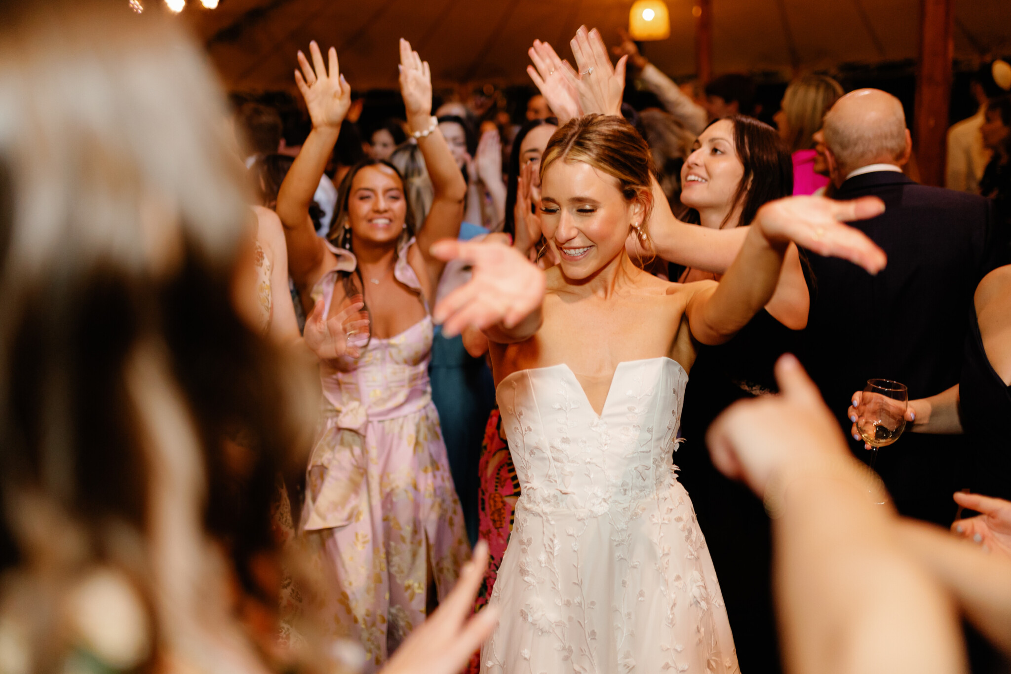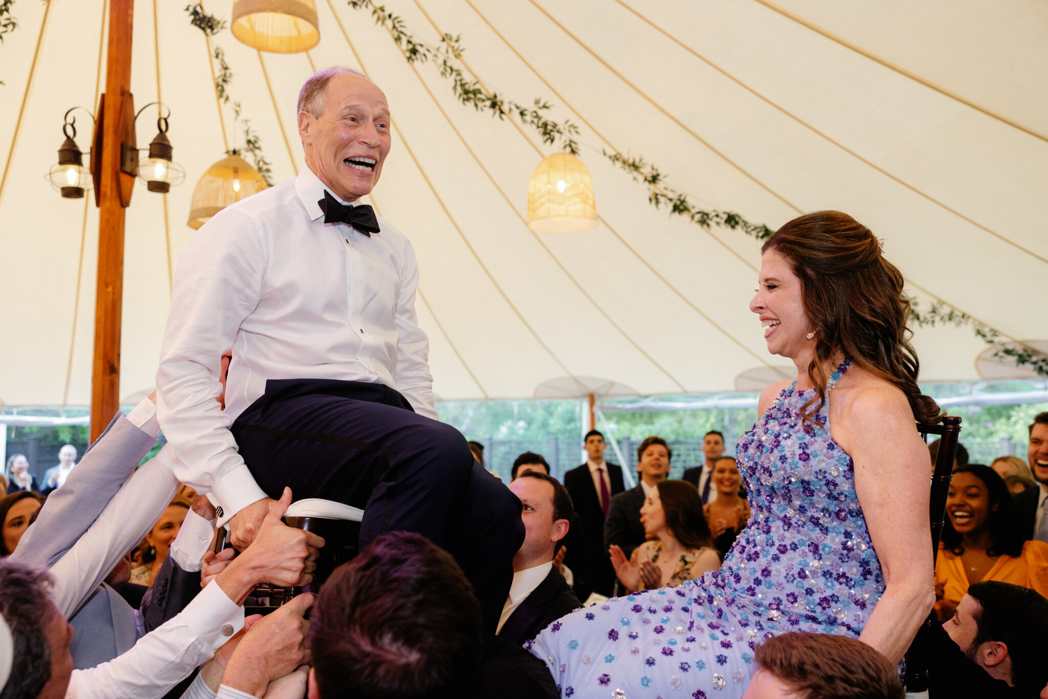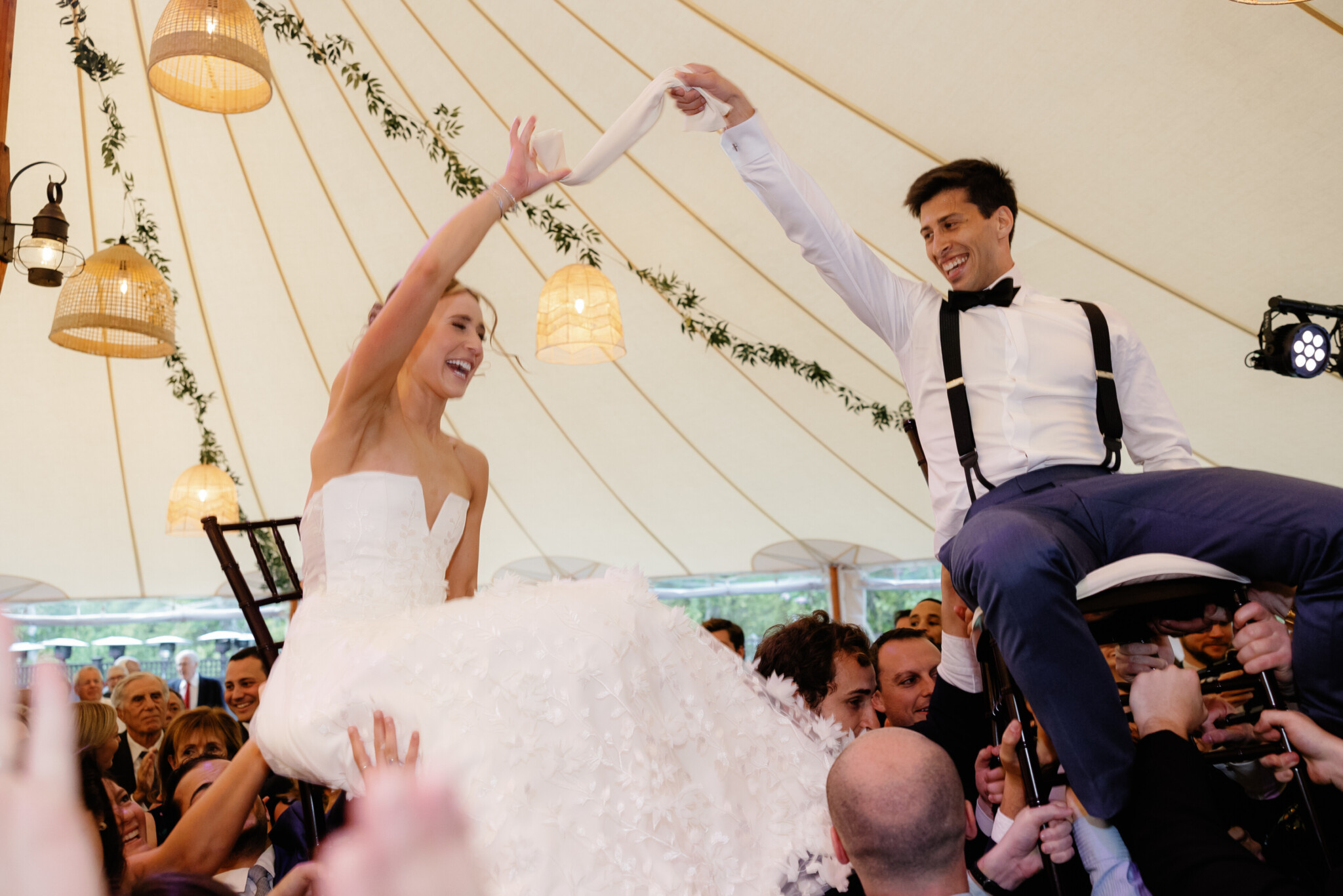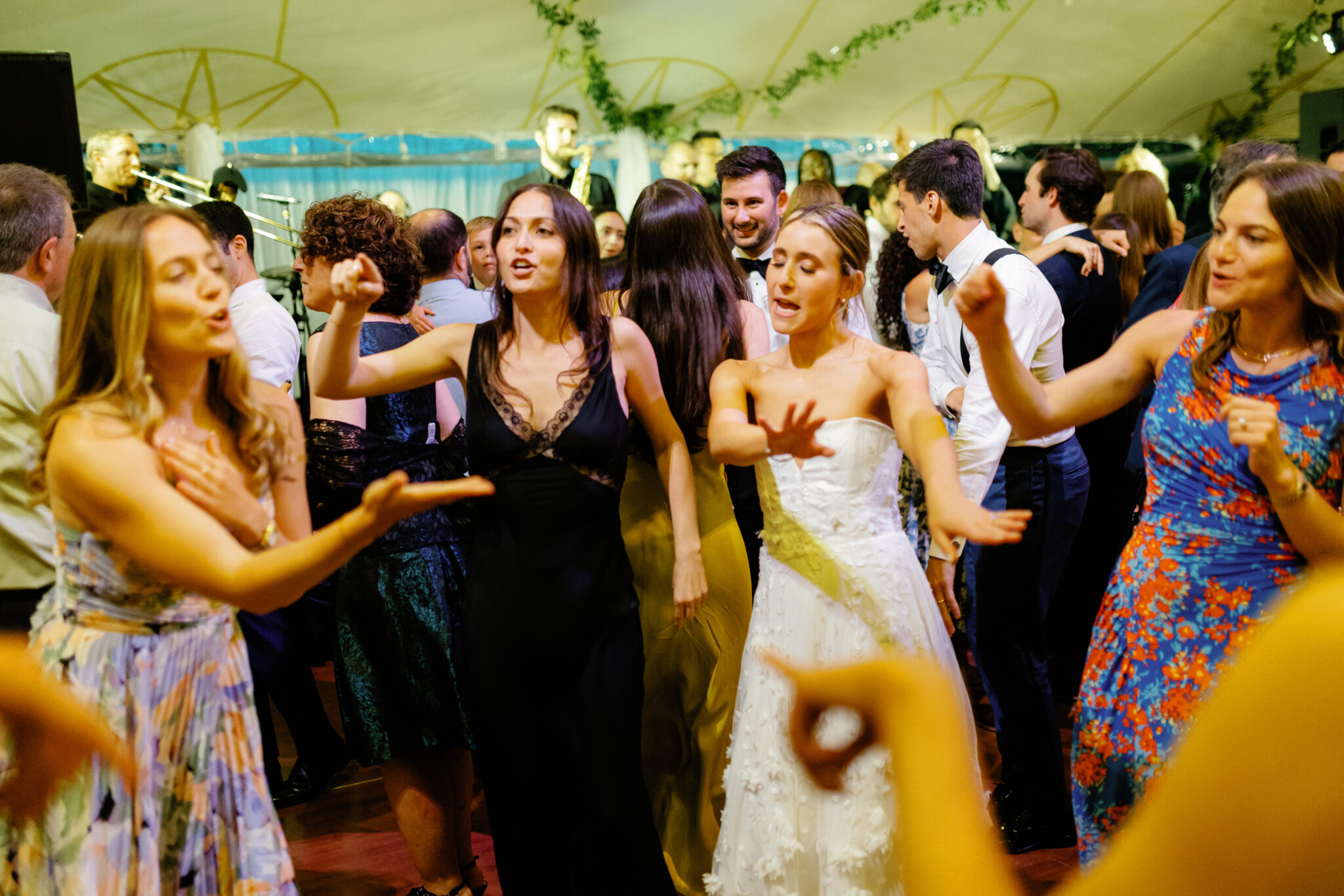 Without skipping a beat, we launched straight into an upbeat tune (their pick was “Let’s Get Loud” by Jennifer Lopez), which immediately spiraled into a full-on party. From there, we stretched into a long, extra-loud, extra-fun hora — nearly 12 minutes of nonstop dancing. The tent was shaking in the best possible way.